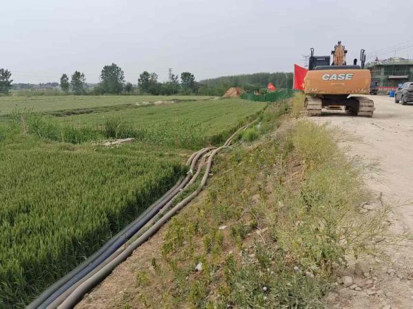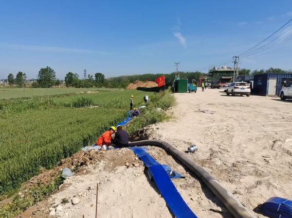 2025年5月1日,蚌埠江河公司安徽省沿淮行蓄洪區等其他洼地治理工程-沿渦等3片洼地工程總承包施工3標項目部快速反應,成立抗旱保供專班,抽調技術骨干組建黨員突擊隊,與懷遠縣機電灌溉站緊密協同作戰,從安徽省機電排灌總站淮南防汛抗旱設備庫緊急調配機電排灌設備,為受旱鄉鎮搭建臨時抽水泵站,助力群眾抓住農時,確保豐收。在首批大功率潛水泵、2000米電纜及配套設備抵達旱情比較嚴重的懷遠縣龍亢鎮后,項目部爭分奪秒,連夜完成設備安裝調試,從拉線到通水僅僅用時12 小時,確保水源能夠及時輸送到田間地頭。